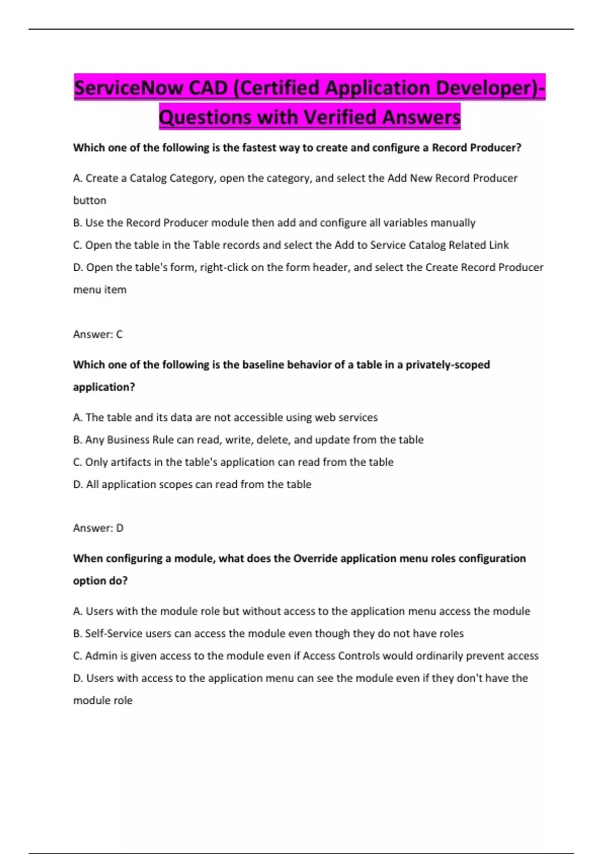 ServiceNow CAD (Certified Application Developer)- Questions with Verified Answers