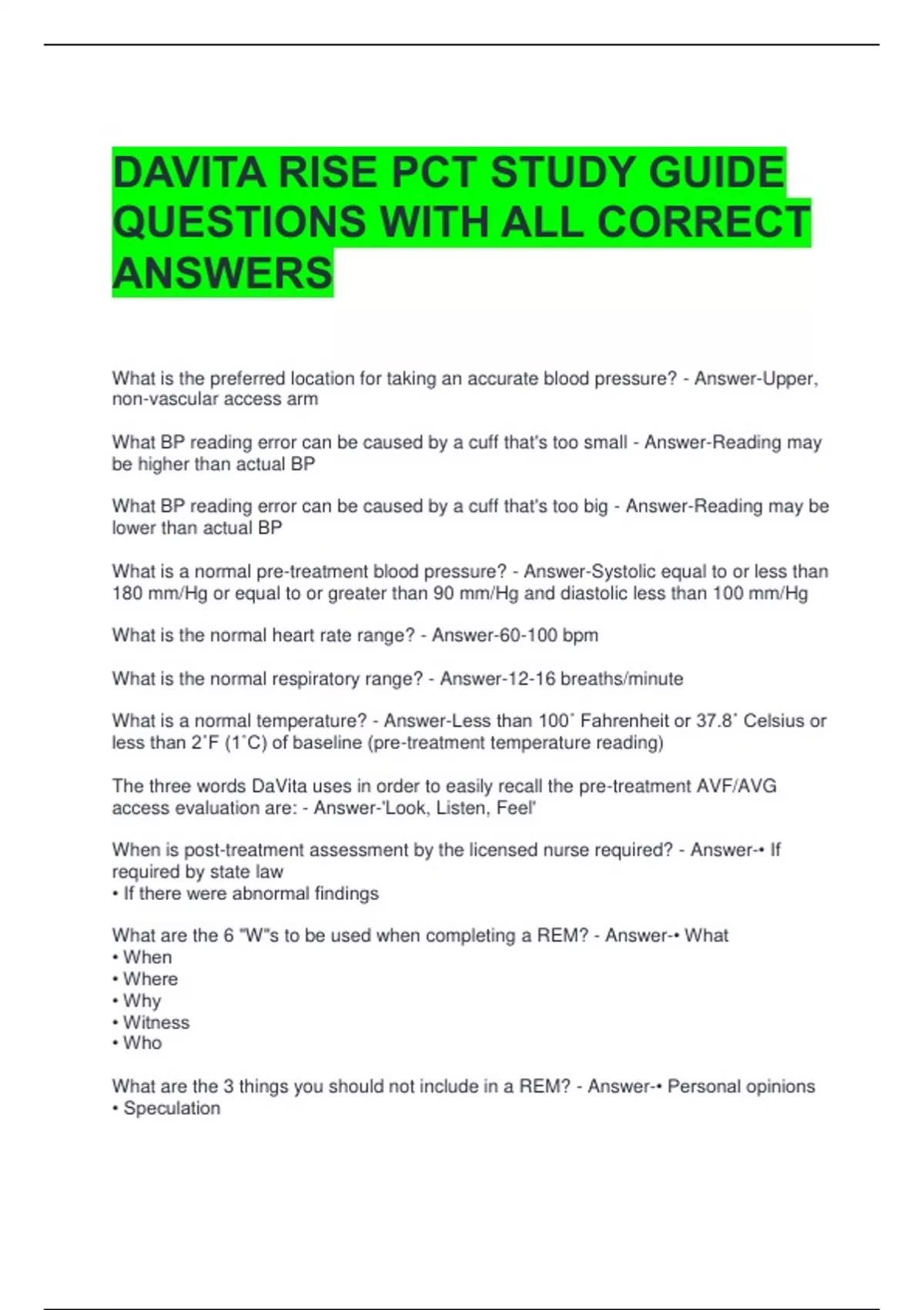 What are the 3 things you should not include in a REM? - Answer-• Personal opinions