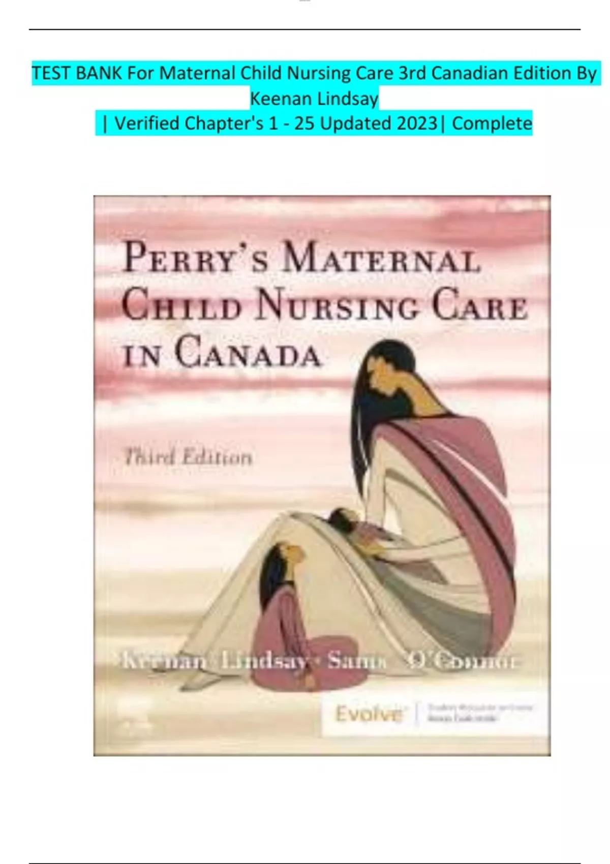 **INSTANT DOWNLOAD TESTBANK PDF*****Comprehensive Study Resource: TEST BANK For Maternal Child Nursing Care 3rd Canadian Edition** Get instant access to a vast repository of test questions and answers with our TEST BANK For Maternal Child Nursing Care 3rd Canadian Edition By Keenan Lindsay. This comprehensive study resource covers all 25 chapters, ensuring that you are thoroughly prepared for your maternal child nursing care exams. **Key Features:** * **Updated 2023 Edition**: Stay current with the latest developments in maternal child nursing care with our regularly updated test bank. * **Verified Chapters 1-25**: Our test bank covers all chapters of the 3rd Canadian Edition, providing you with a complete study solution. * **Thousands of Questions and Answers**: Our extensive question bank is designed to help you practice and reinforce your knowledge of maternal child nursing care concepts. * **Convenient and Accessible**: Instantly access our digital test bank from anywhere, at any time, and study at your own pace. **Why Choose Our TEST BANK?** * **Improve Your Grades**: With our comprehensive test bank, you'll be able to assess your knowledge, identify areas for improvement, and focus your studies on the most critical topics. * **Save Time**: Our test bank saves you time and effort by providing a one-stop study solution, eliminating the need to search for individual practice questions. * **Boost Your Confidence**: With our extensive question bank, you'll feel more confident and prepared for your exams, helping you to achieve your academic goals. **Order Now and Achieve Academic Success!**