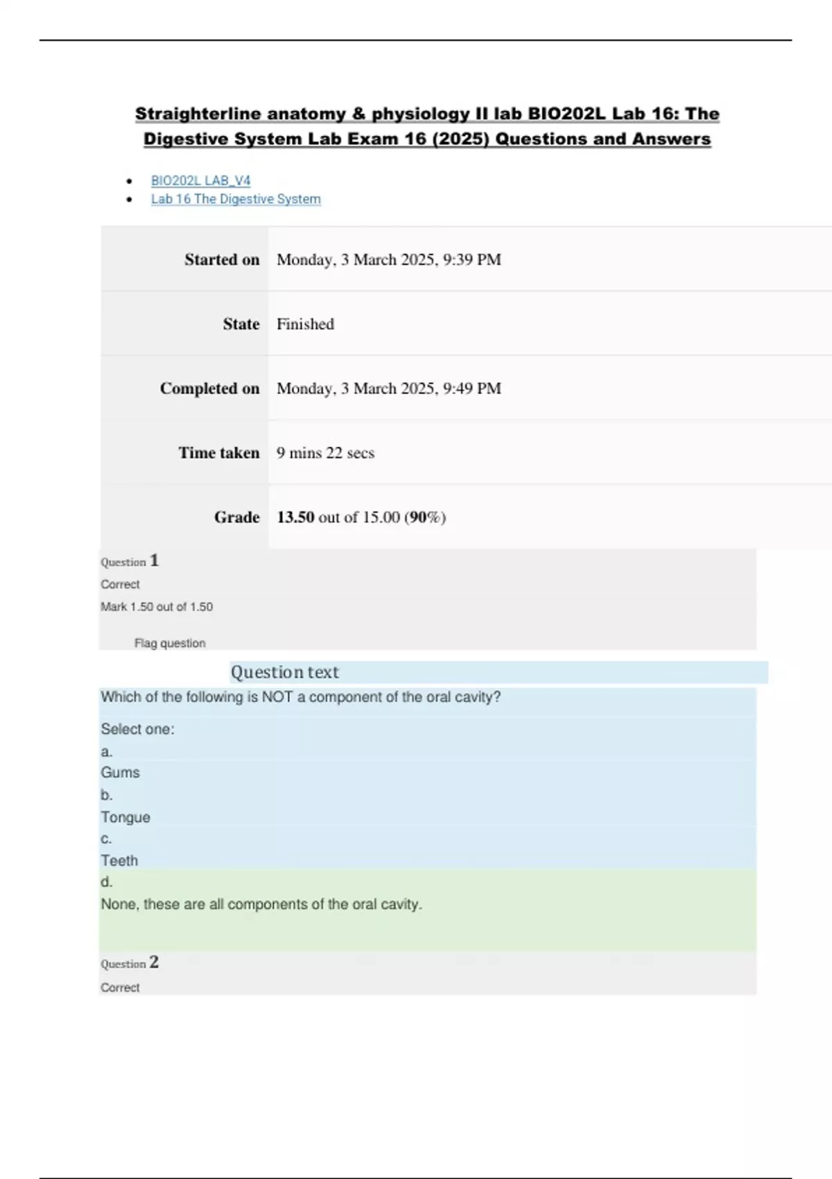 Digestive System Lab Exam 16 (2025) Questions and Answers