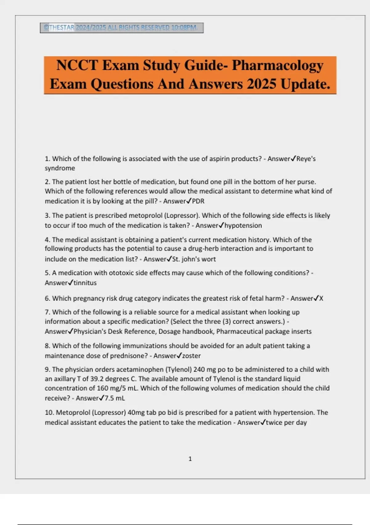 1. Which of the following is associated with the use of aspirin products? - Answer✔Reye's