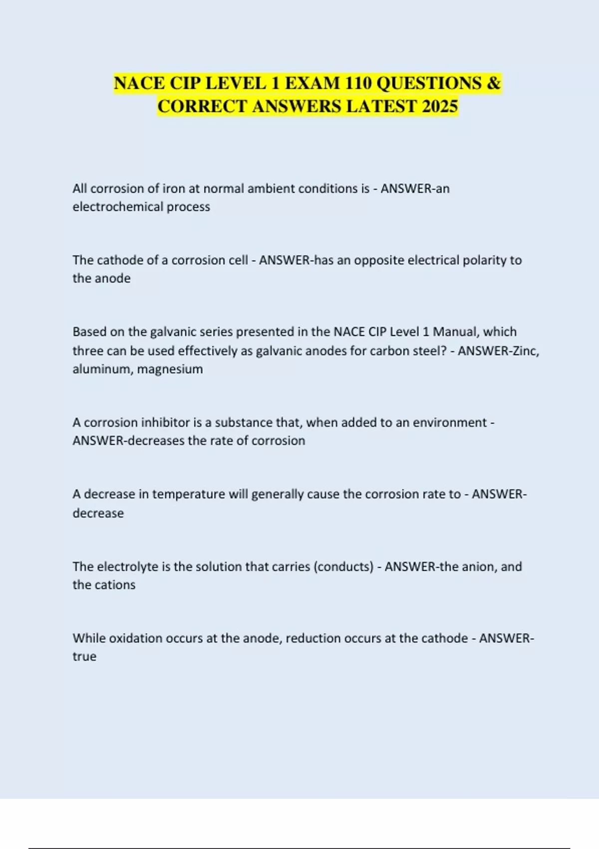 NACE CIP LEVEL 1 EXAM 110 QUESTIONS &