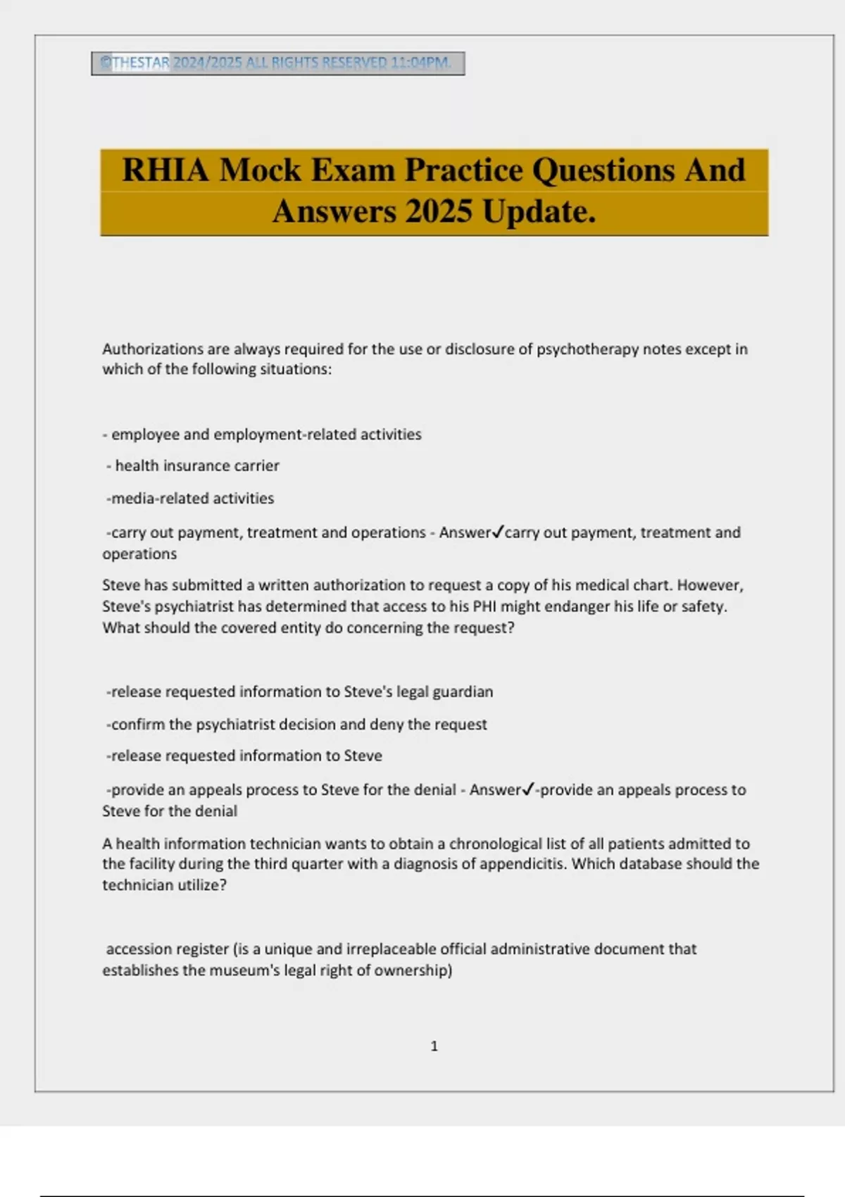 RHIA Mock Exam Practice Questions And
