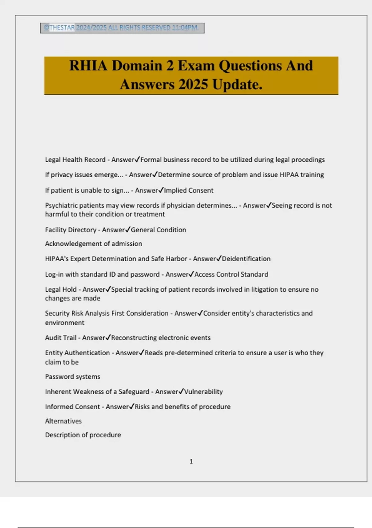 Legal Health Record - Answer✔Formal business record to be utilized during legal procedings