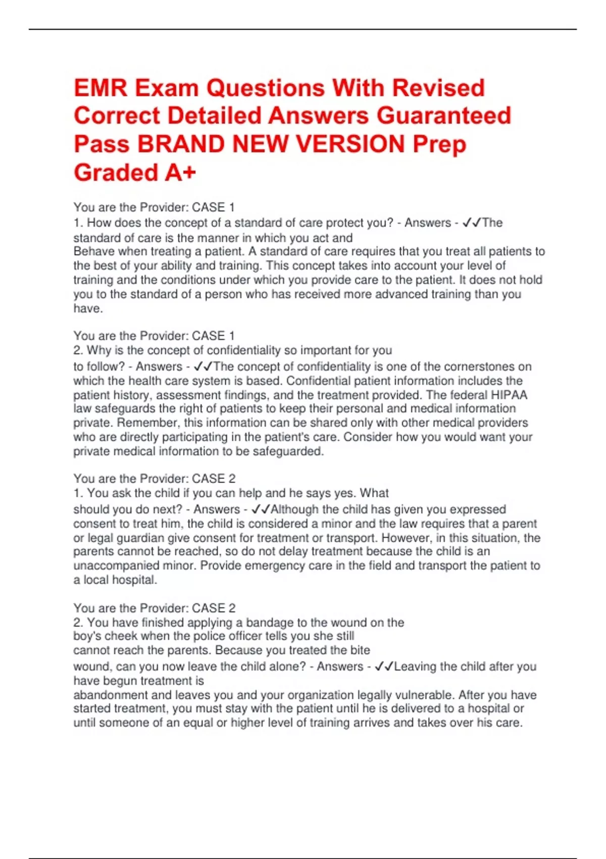 - Answers - ✔✔As an EMR, you have a duty to act when you are dispatched on a call