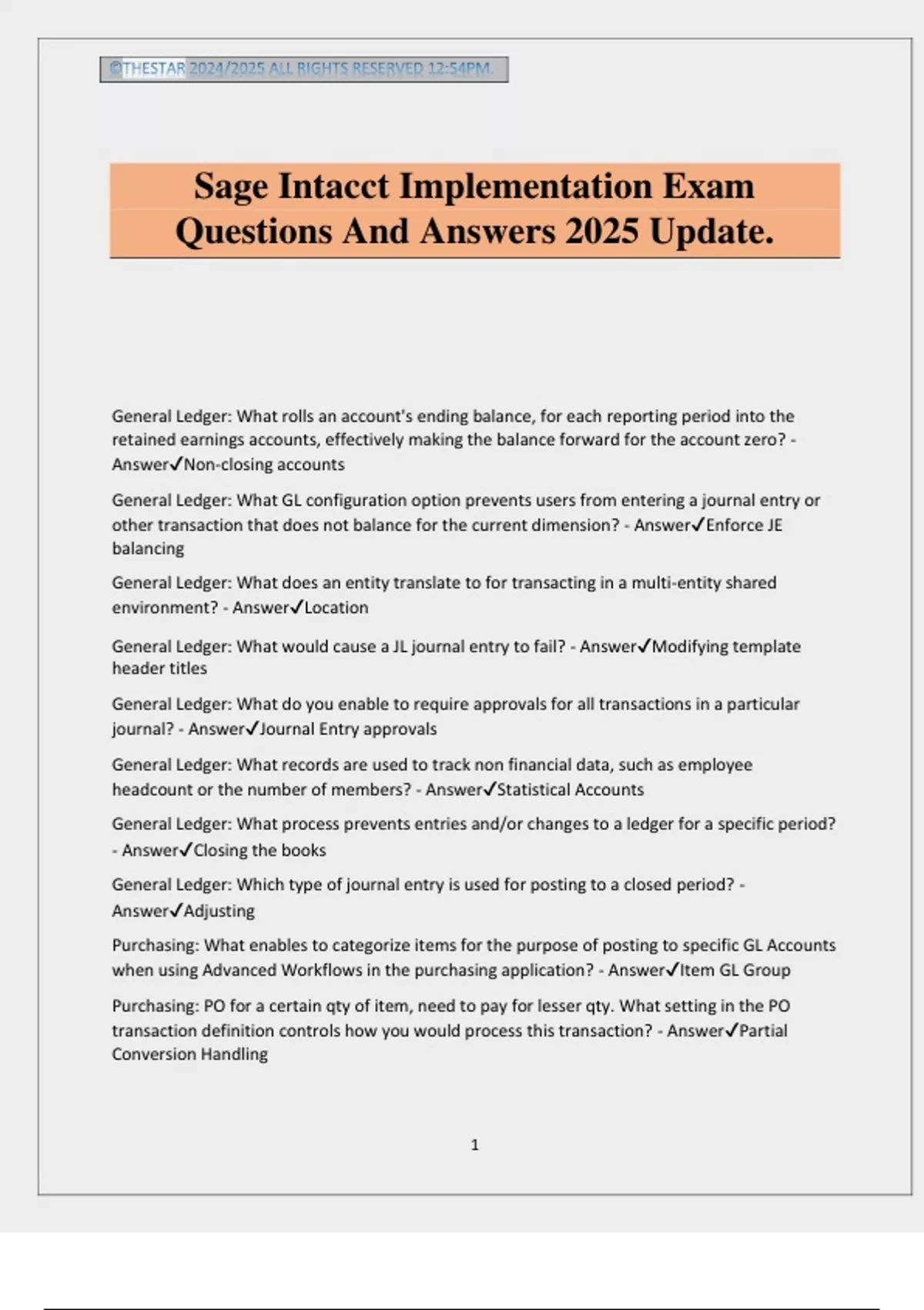 Sage Intacct Implementation Exam