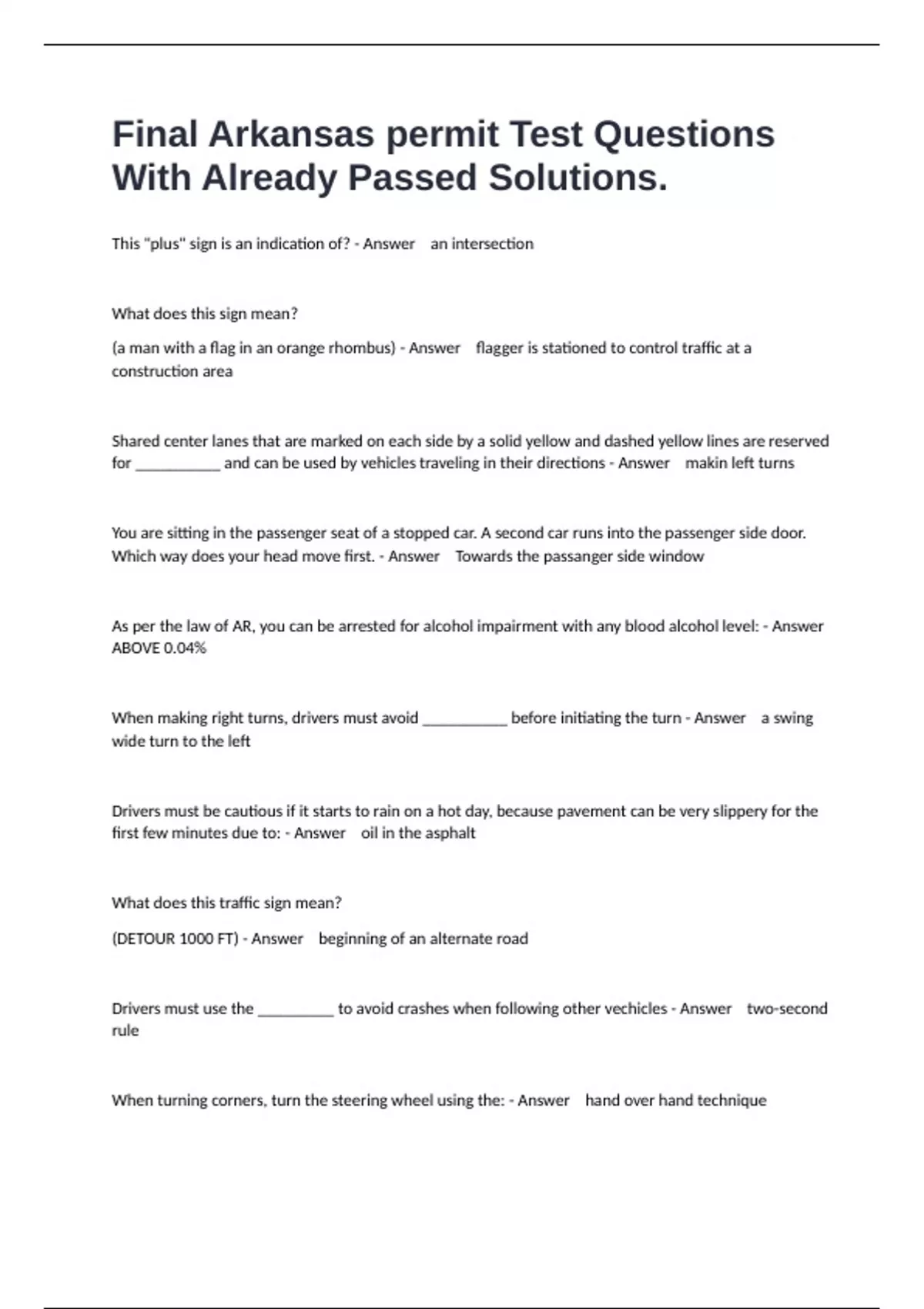 Final Arkansas permit Test Questions With Already Passed Solutions.