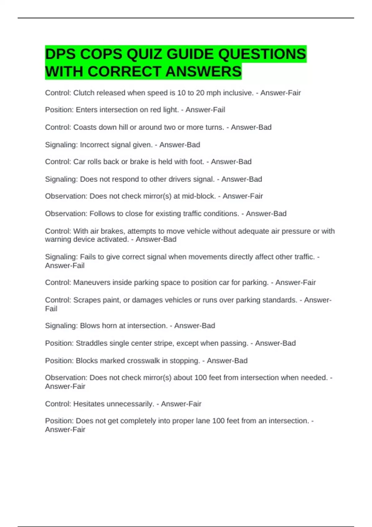DPS COPS QUIZ GUIDE QUESTIONS