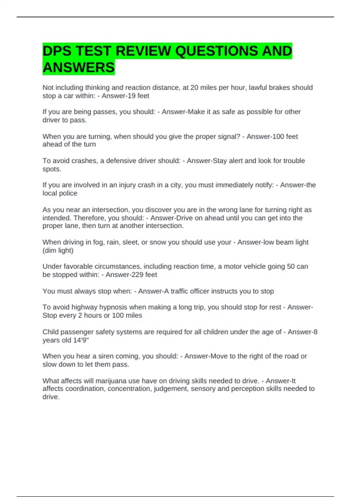 DPS TEST REVIEW QUESTIONS AND