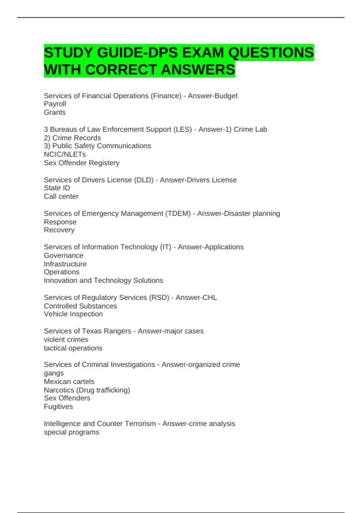 STUDY GUIDE-DPS EXAM QUESTIONS