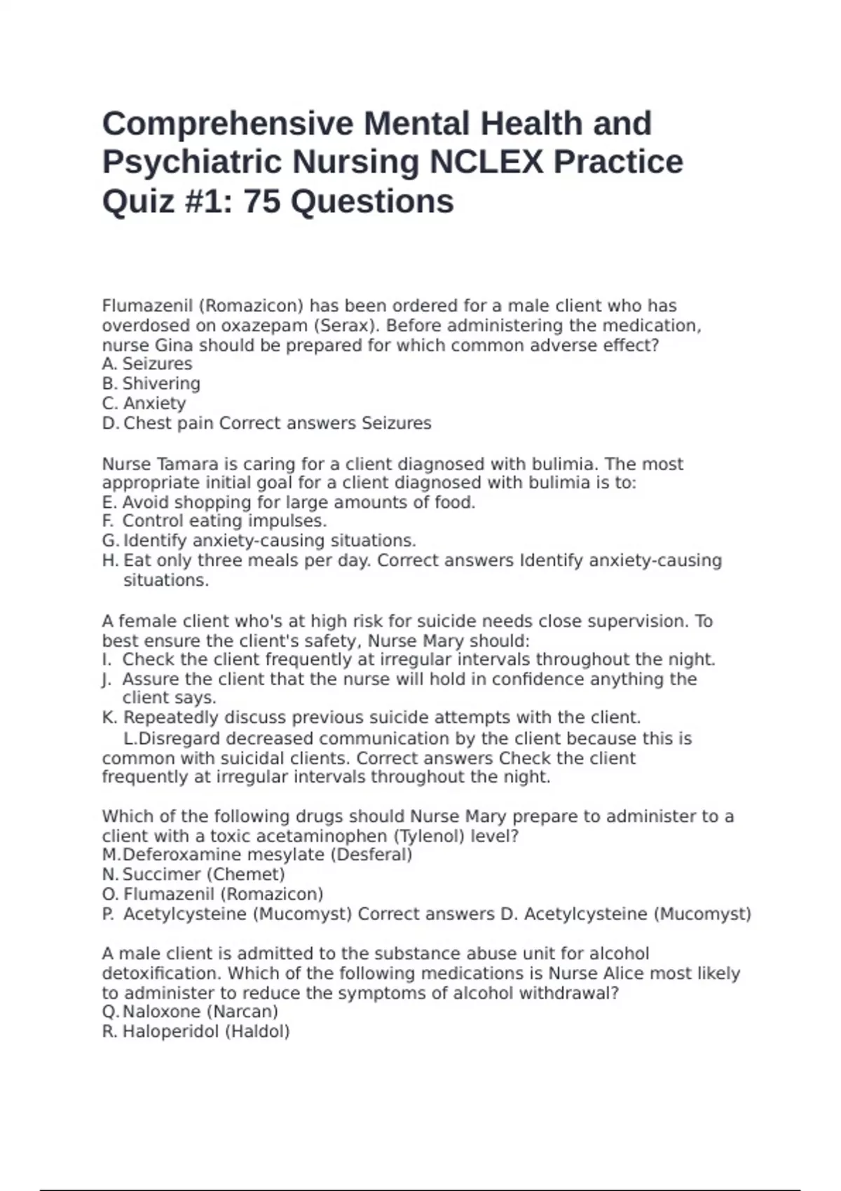 Psychiatric Nursing NCLEX Practice