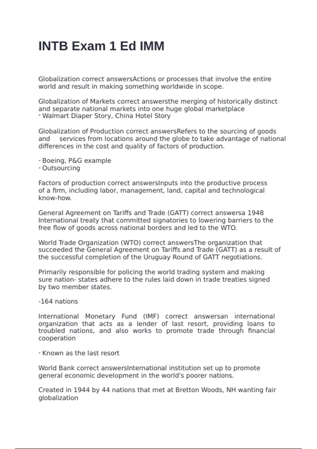 General Agreement on Tariffs and Trade (GATT) correct answersa 1948