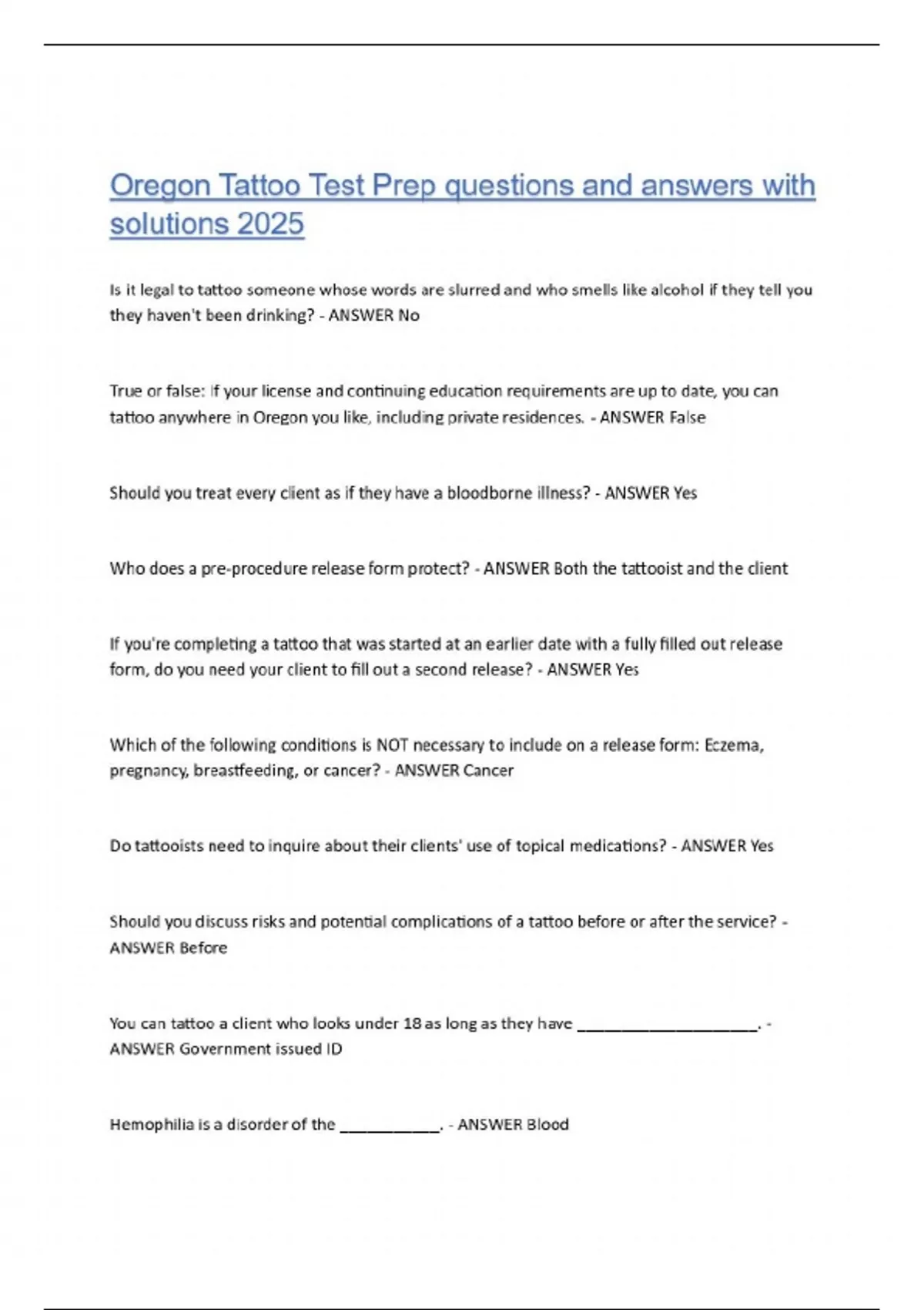 Oregon Tattoo Test Prep questions and answers with solutions 2025