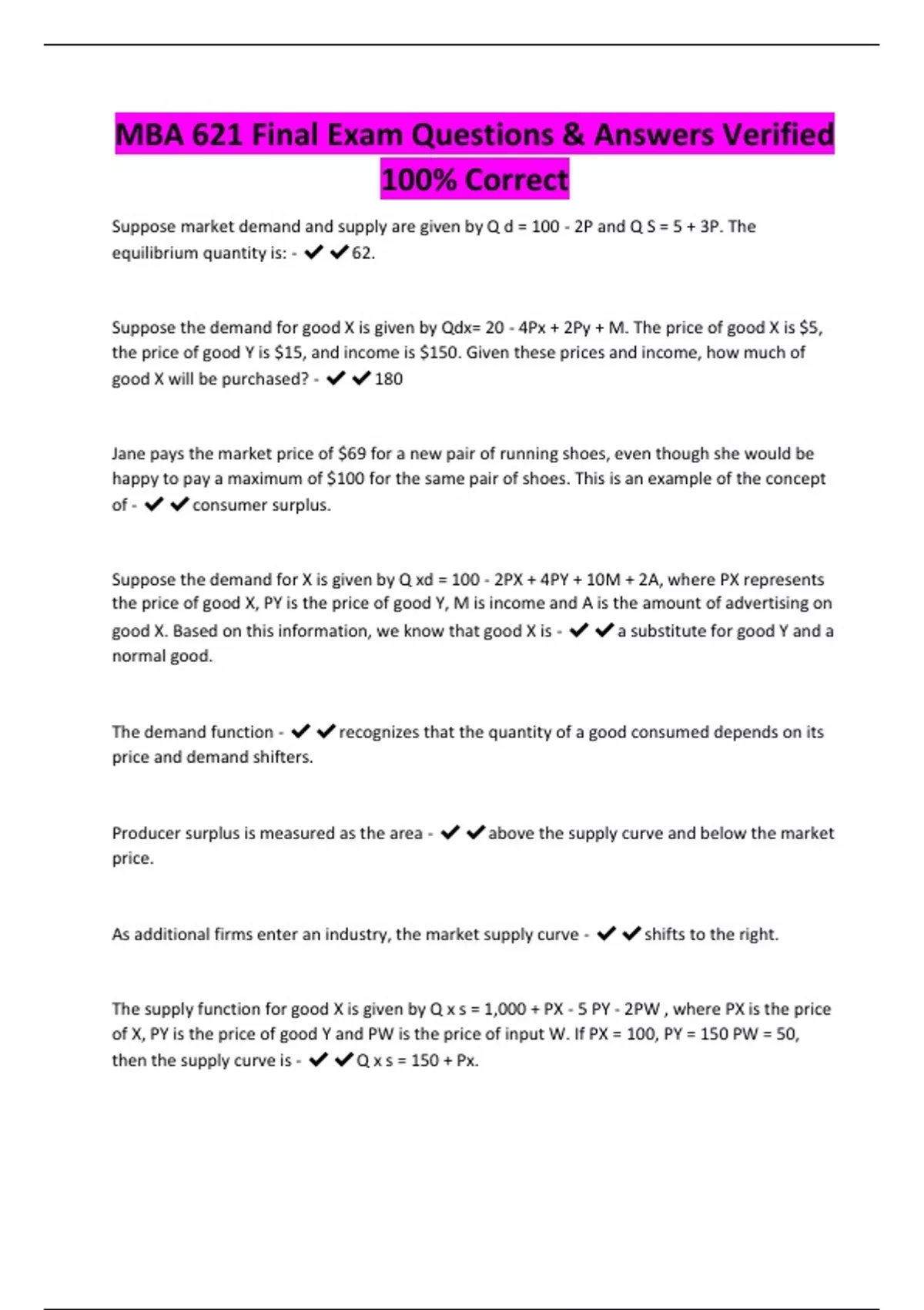 MBA 621 Final Exam Questions & Answers Verified 100% Correct