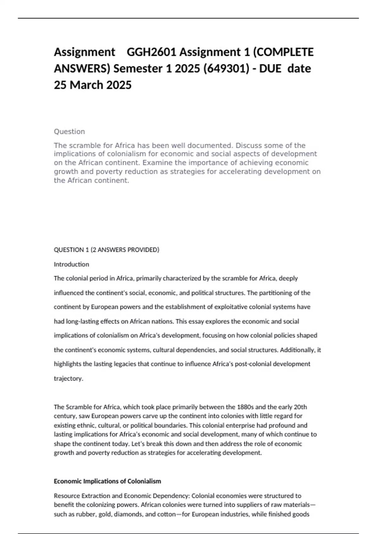 Assignment GGH2601 Assignment 1 (COMPLETE ANSWERS) Semester 1 2025 (649301) - DUE date 25 March 2025