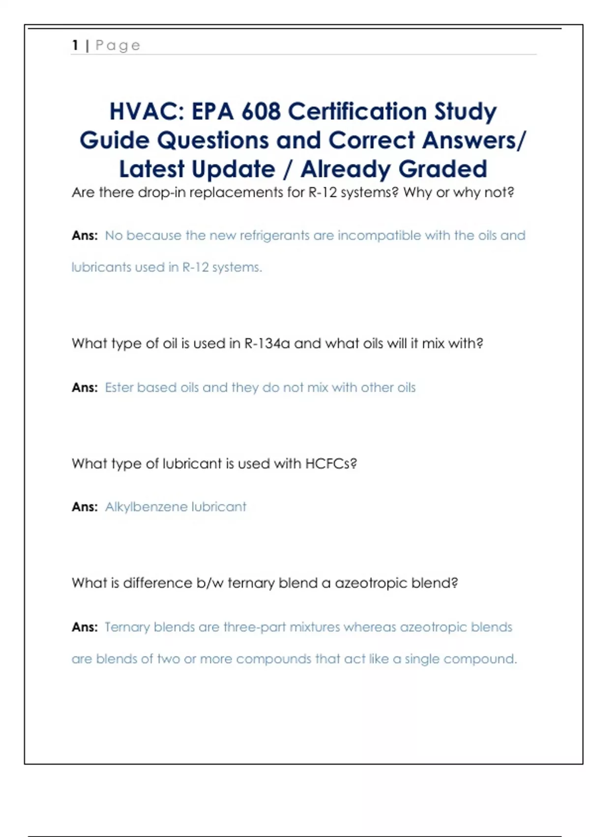 HVAC: EPA 608 Certification Study Guide Questions and Correct Answers/ Latest Update / Already Graded