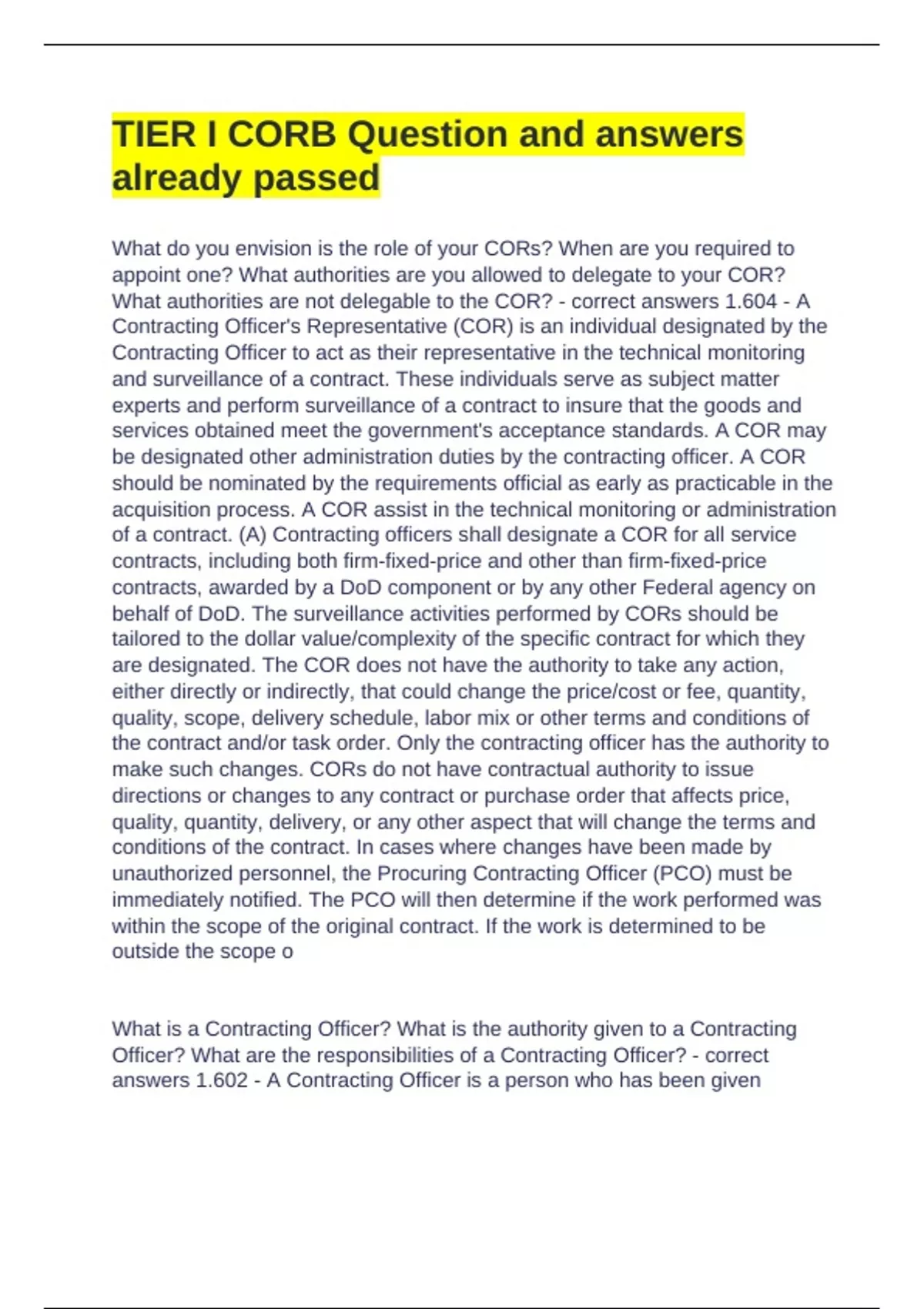 What authorities are not delegable to the COR? - correct answers 1.604 - A