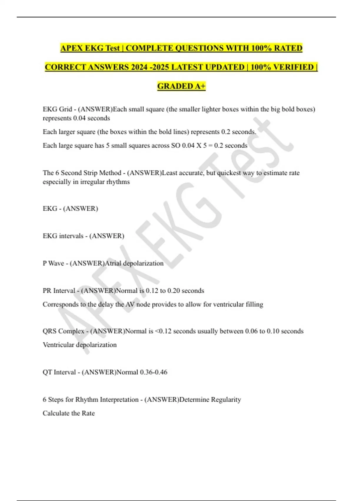 APEX EKG Test | COMPLETE QUESTIONS WITH 100% RATED CORRECT ANSWERS LATEST UPDATED | 100% VERIFIED | GRADED A+