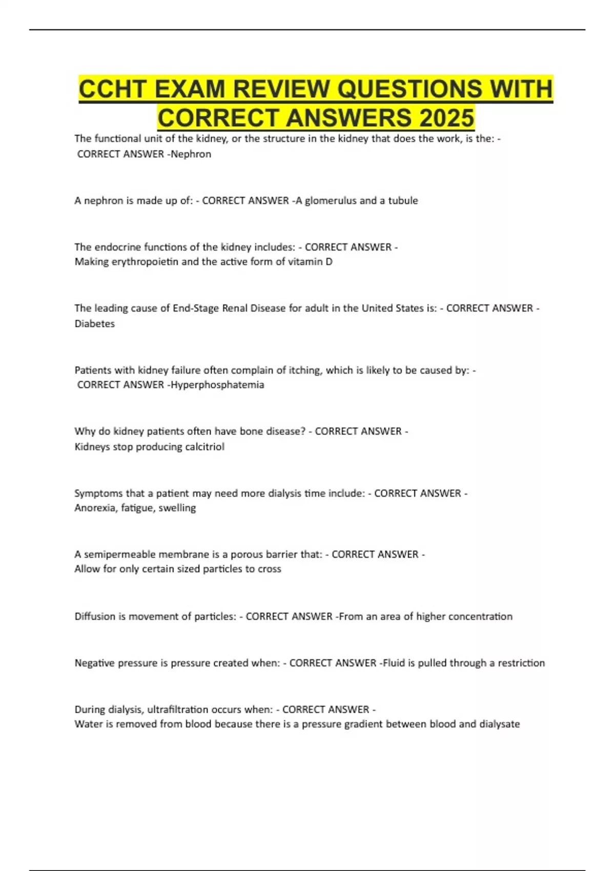 CCHT EXAM REVIEW QUESTIONS WITH CORRECT ANSWERS 2025
