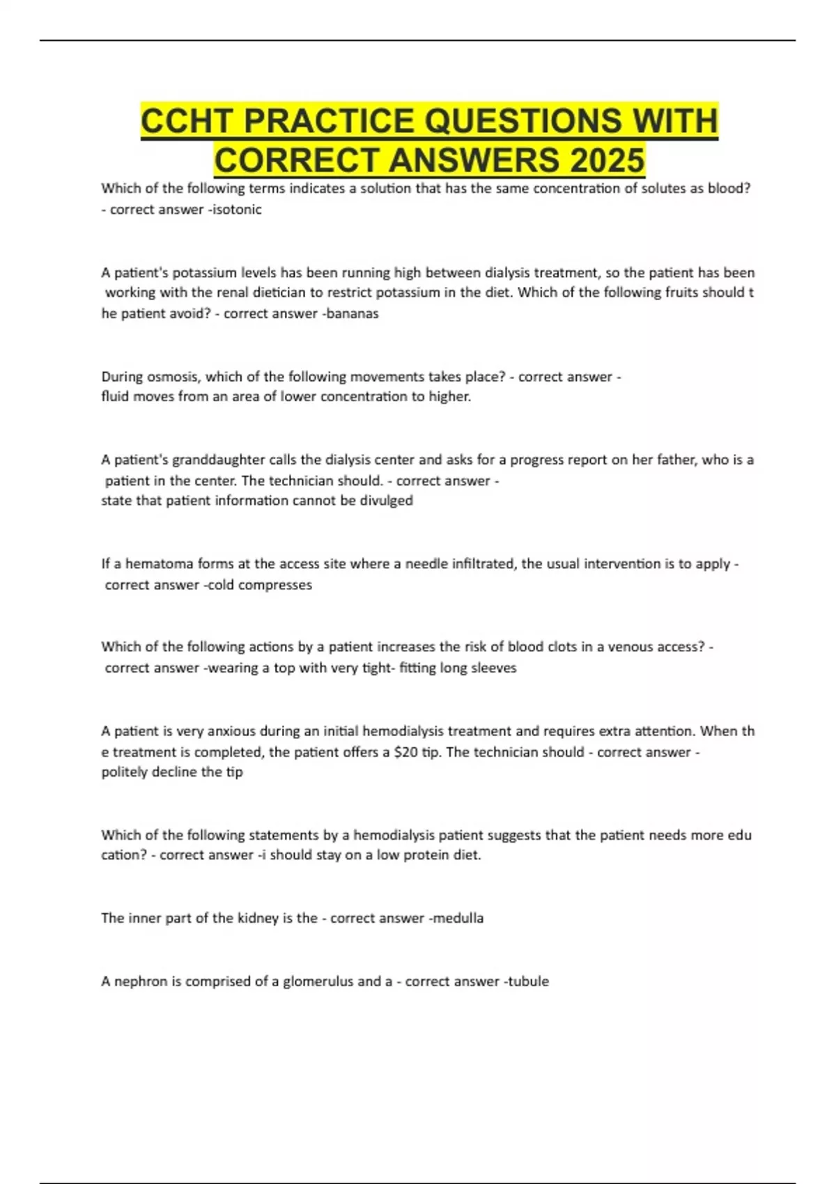 CCHT PRACTICE QUESTIONS WITH CORRECT ANSWERS 2025