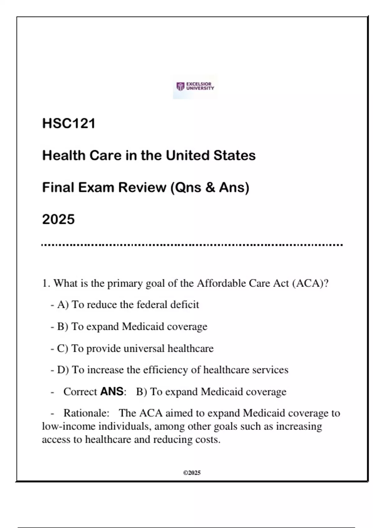 HSC121 HC in the US (EU) Final Exam Review 2025 (Qns & Ans)HSC121 HC in the US (EU) Final Exam Review 2025 (Qns & Ans)HSC121 HC in the US (EU) Final Exam Review 2025 (Qns & Ans)