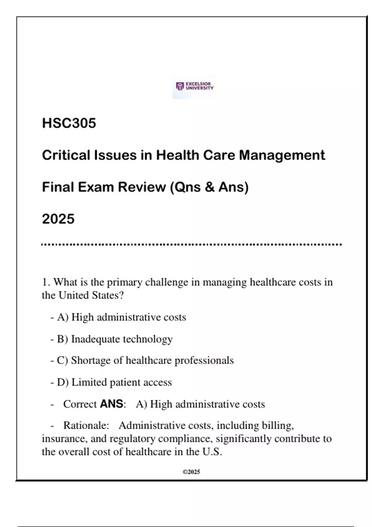 - Correct ANS: A) High administrative costs