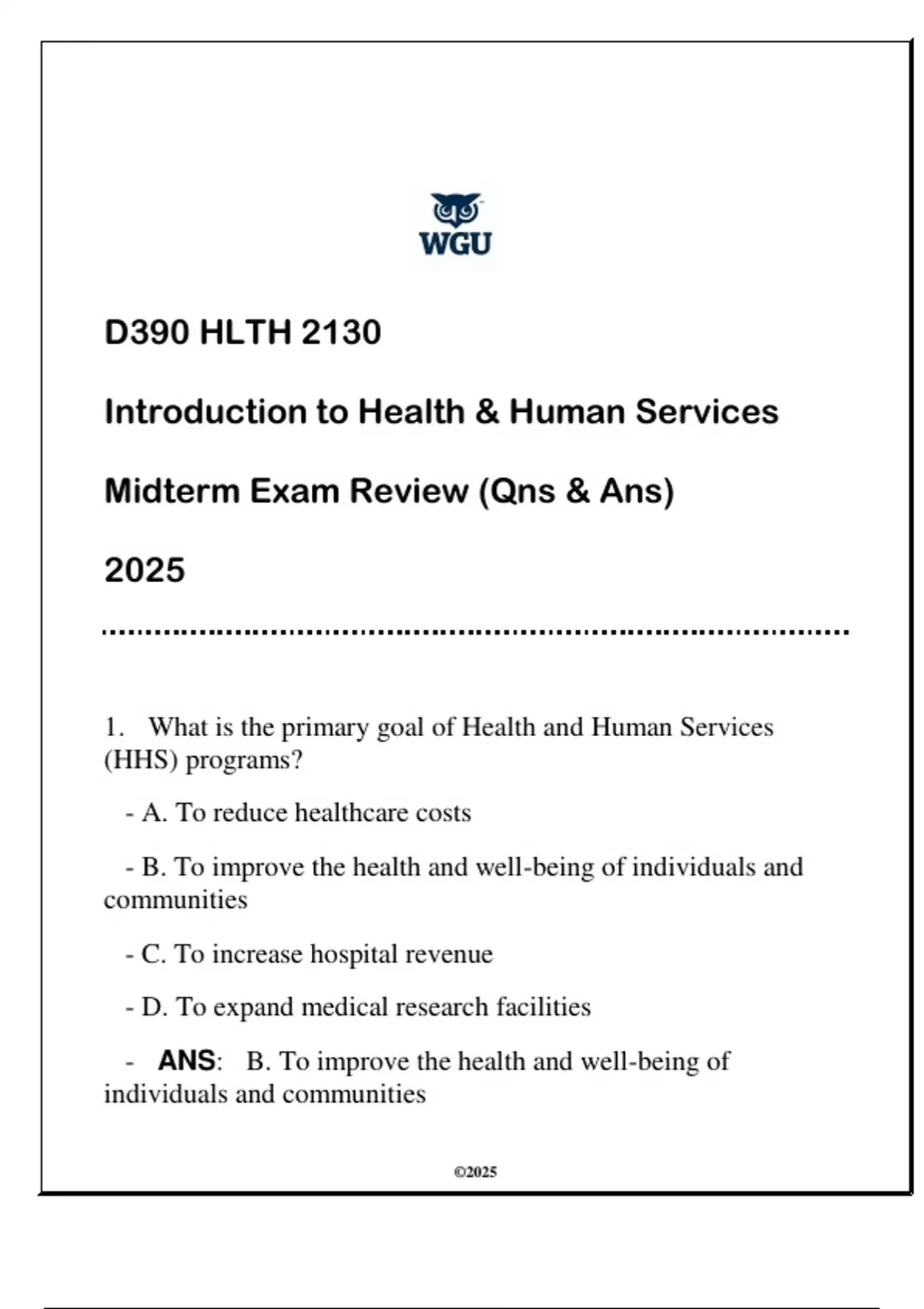 - ANS: B. To improve the health and well-being of