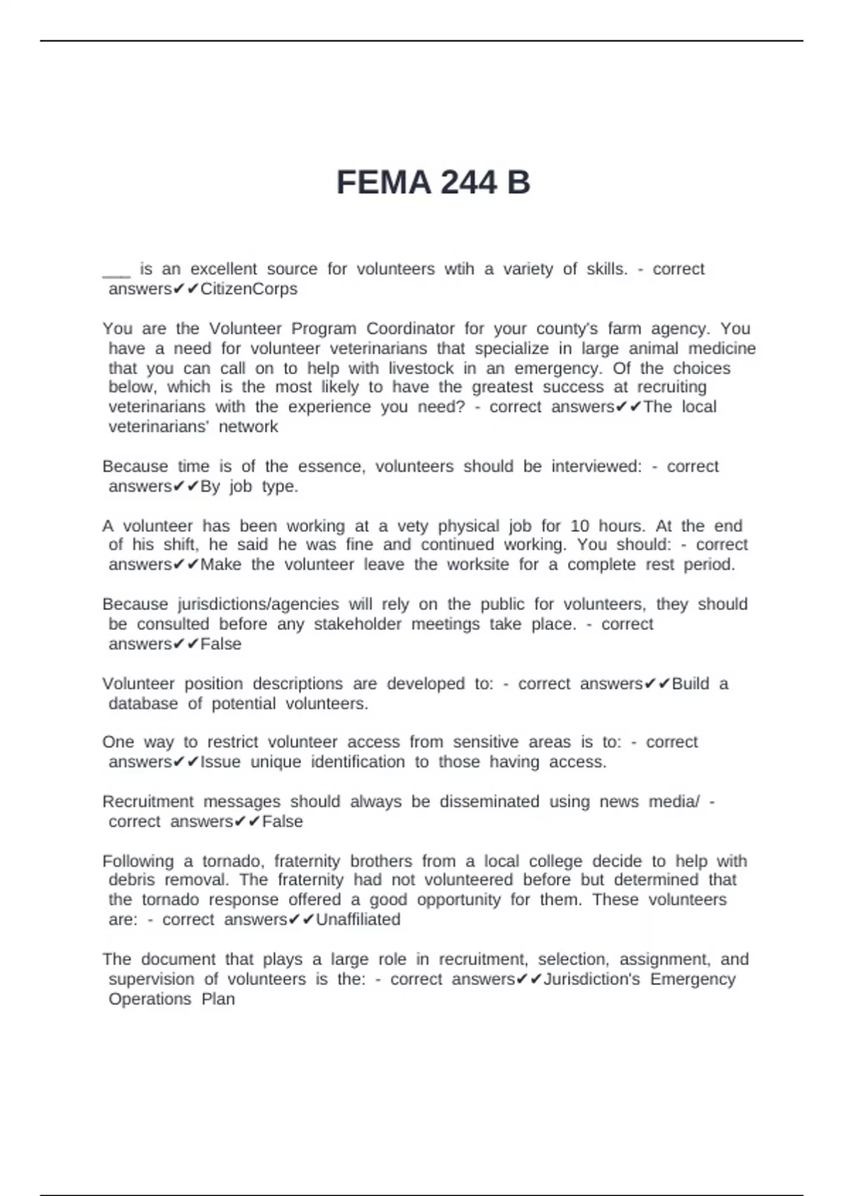 bsupervision bof bvolunteers bis bthe: b- bcorrect banswers✔✔Jurisdiction's bEmergency