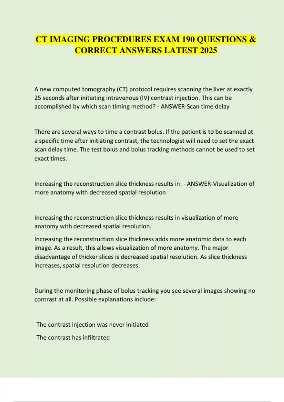 CT IMAGING PROCEDURES EXAM 190 QUESTIONS &