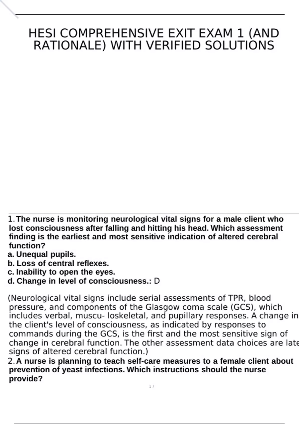 HESI Comprehensive Exit Exam 1 (And Rationale)