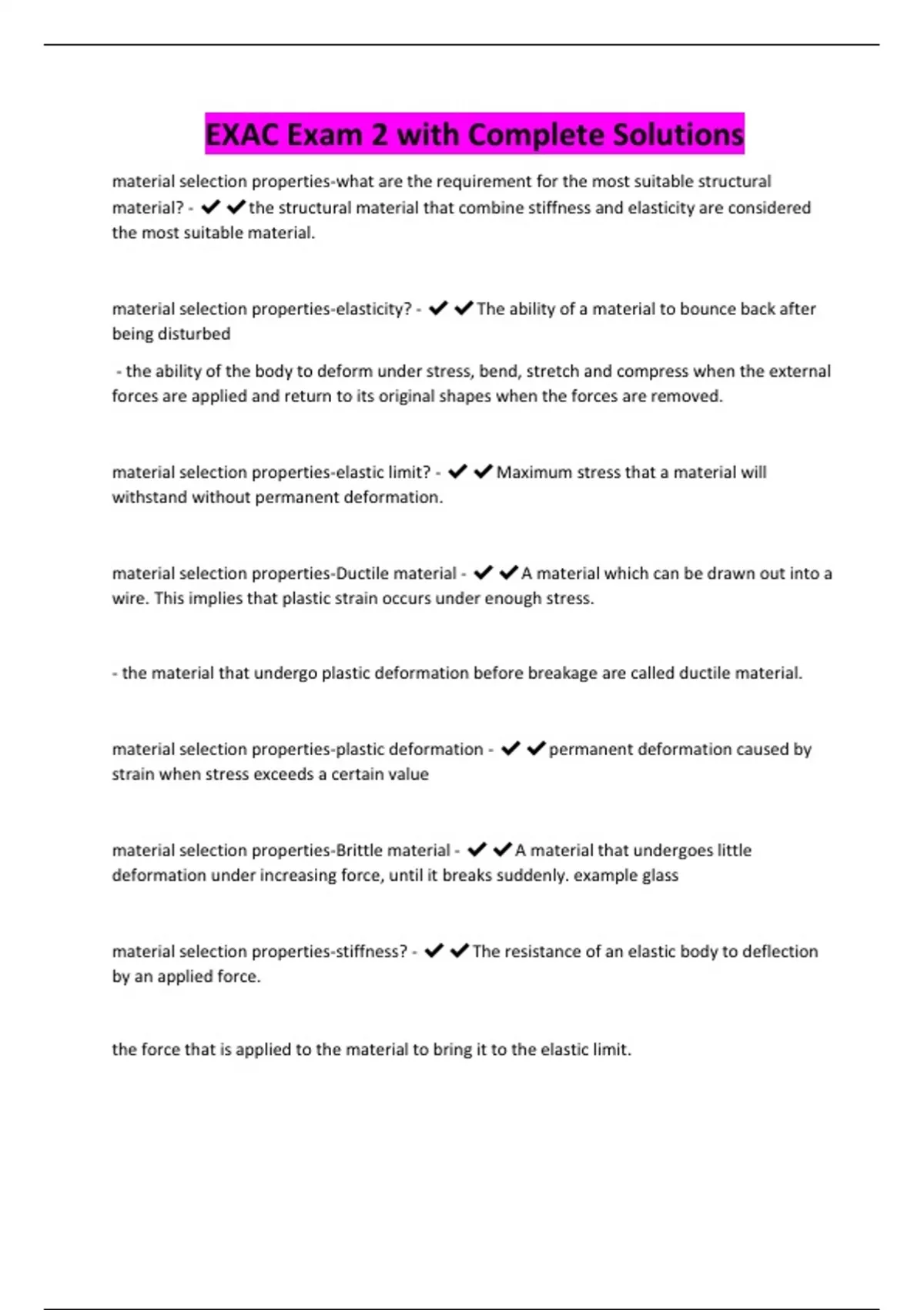 EXAC Exam 2 with Complete Solutions
