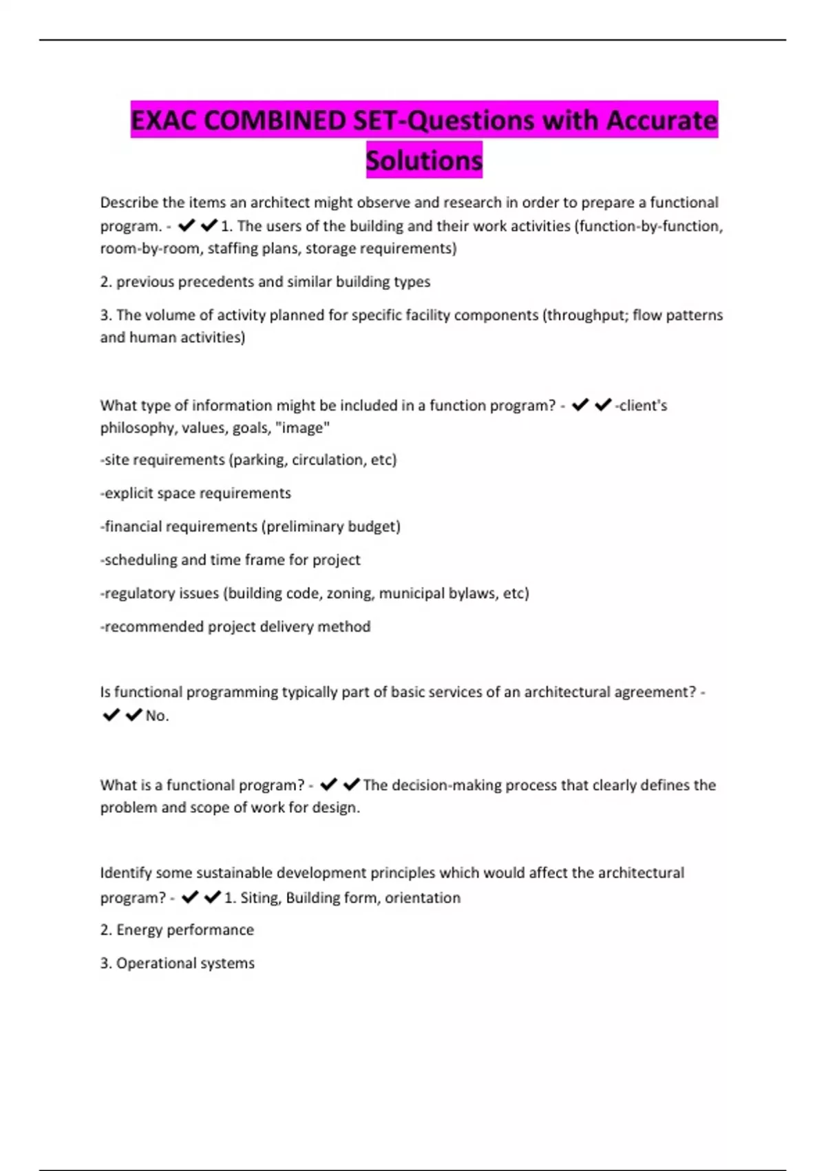 EXAC COMBINED SET-Questions with Accurate Solutions