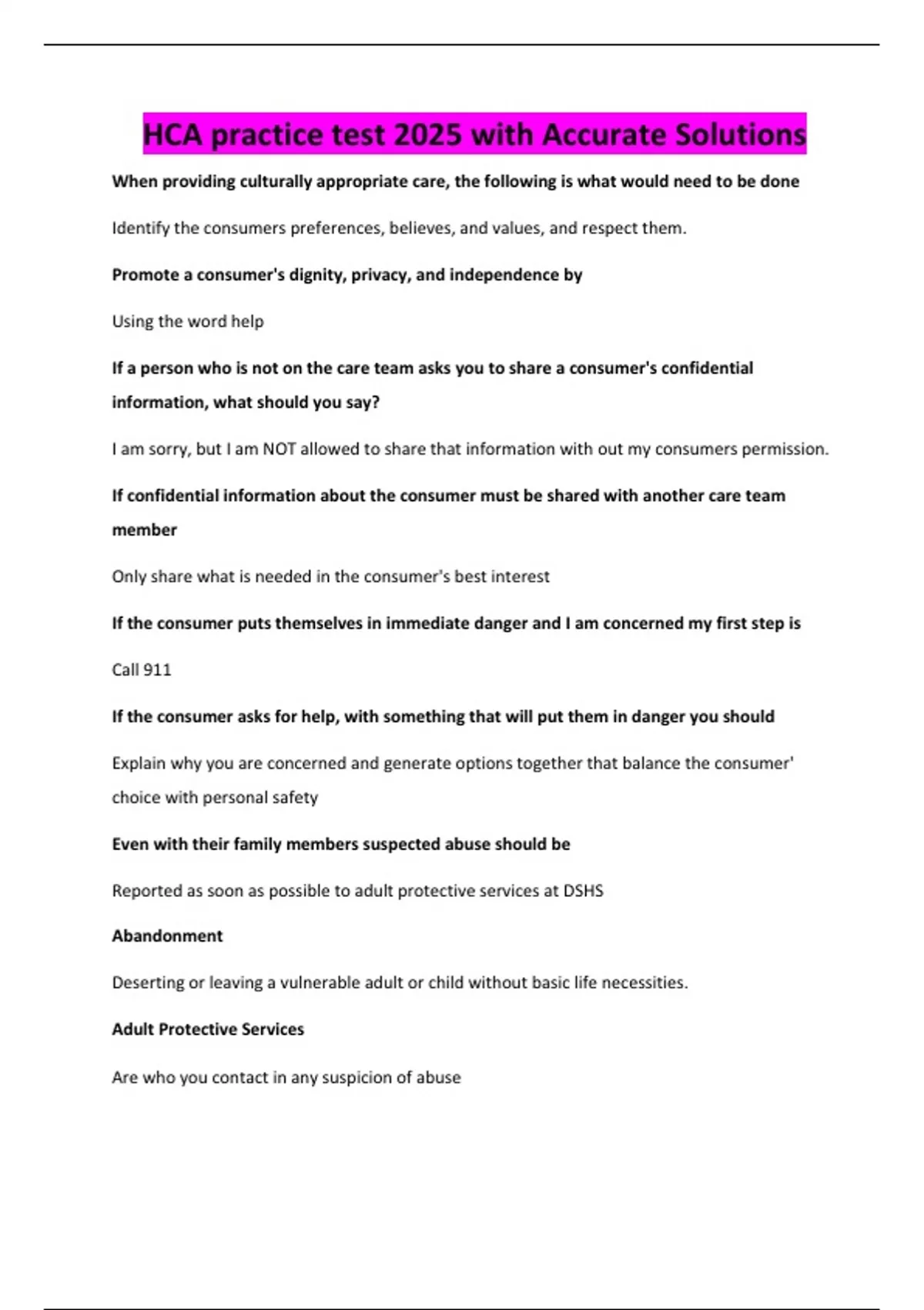 HCA practice test 2025 with Accurate Solutions