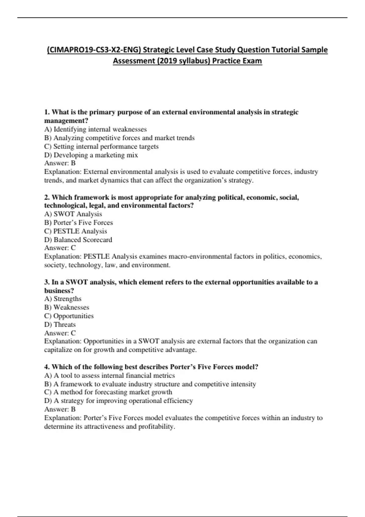 Explanation: Porter’s Five Forces model evaluates the competitive forces within an industry to