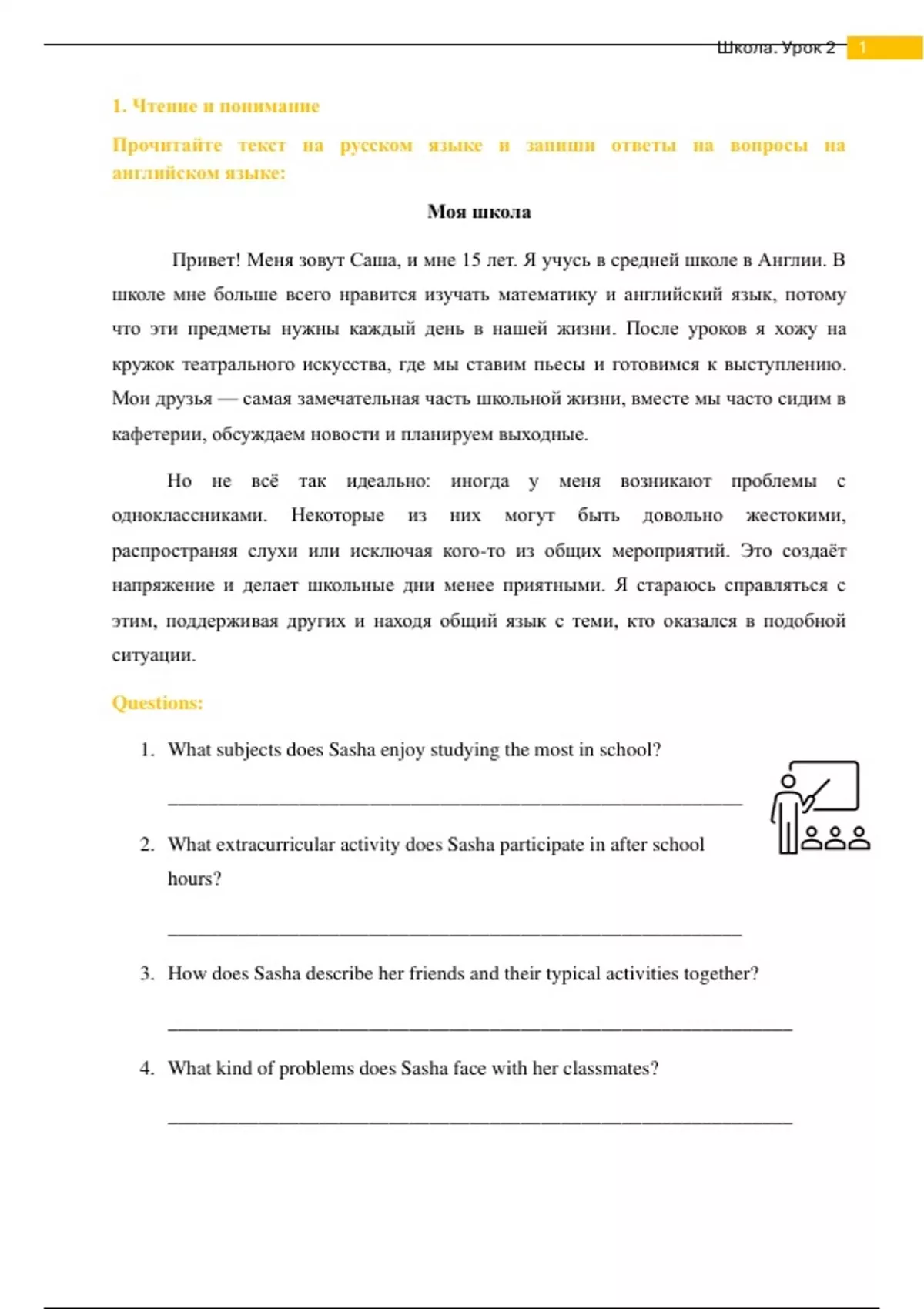 Прочитайте текст на русском языке и запиши ответы на вопросы на