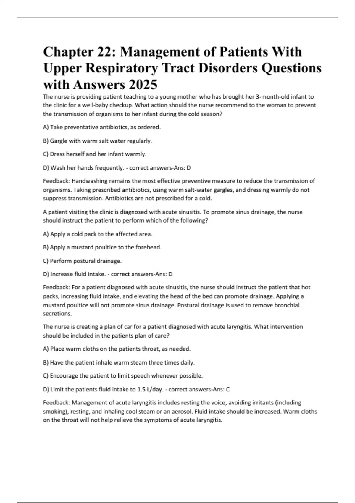 Upper Respiratory Tract Disorders Questions