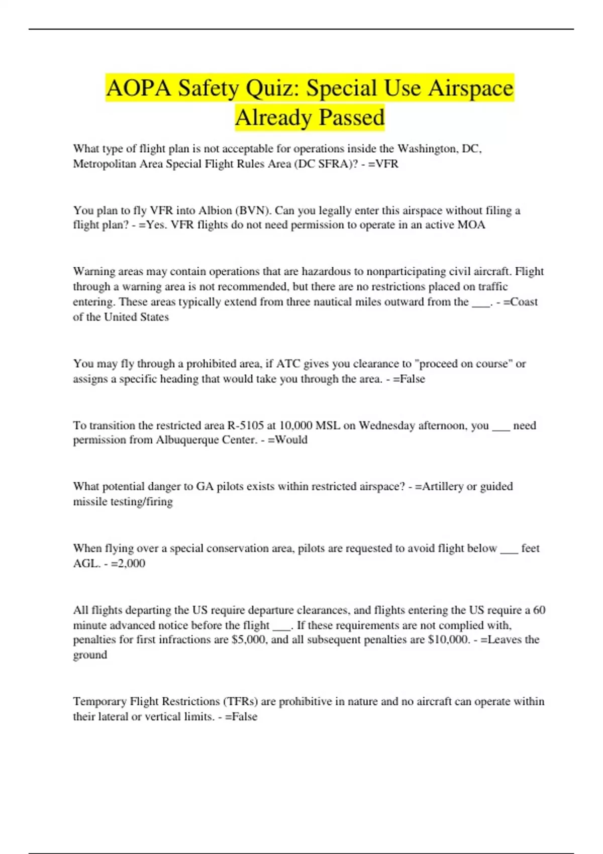 AOPA Safety Quiz: Special Use Airspace Already Passed