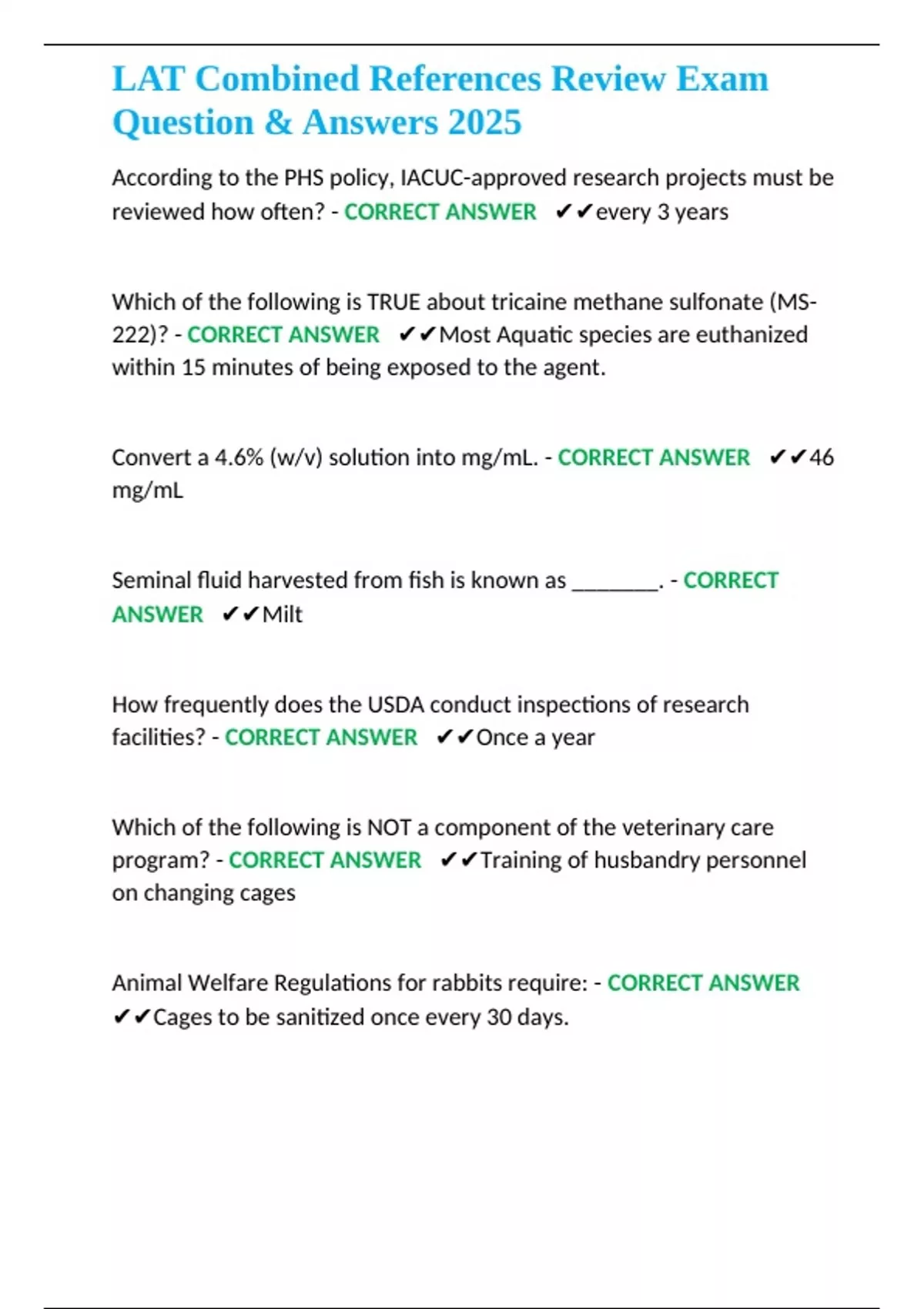 222)? - CORRECT ANSWER ✔✔Most Aquatic species are euthanized