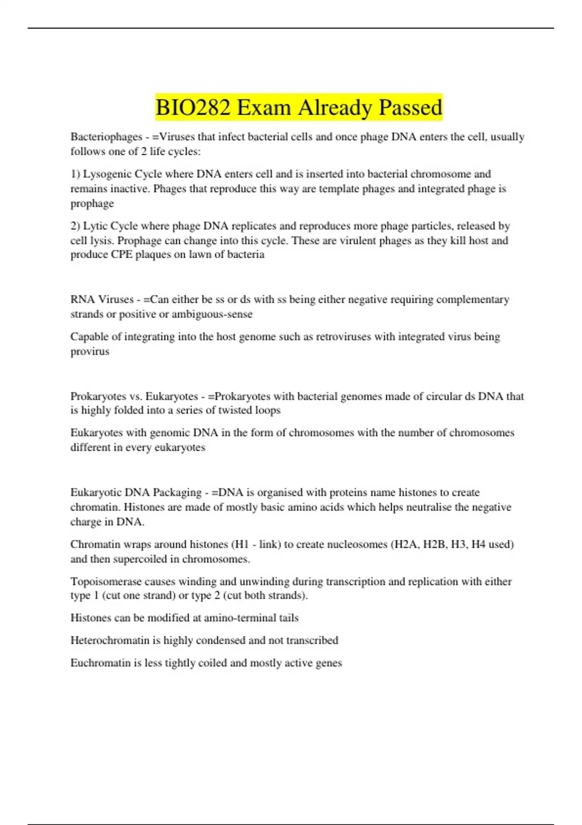 BIO282 Exam Already Passed