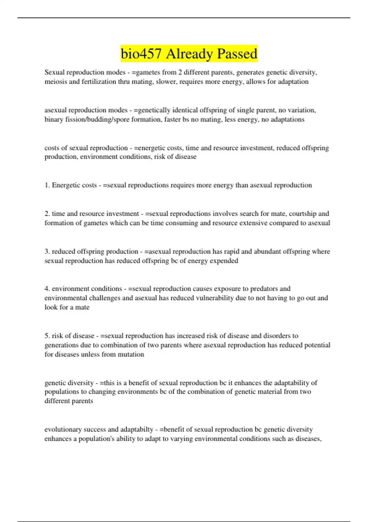 bio457 Already Passed