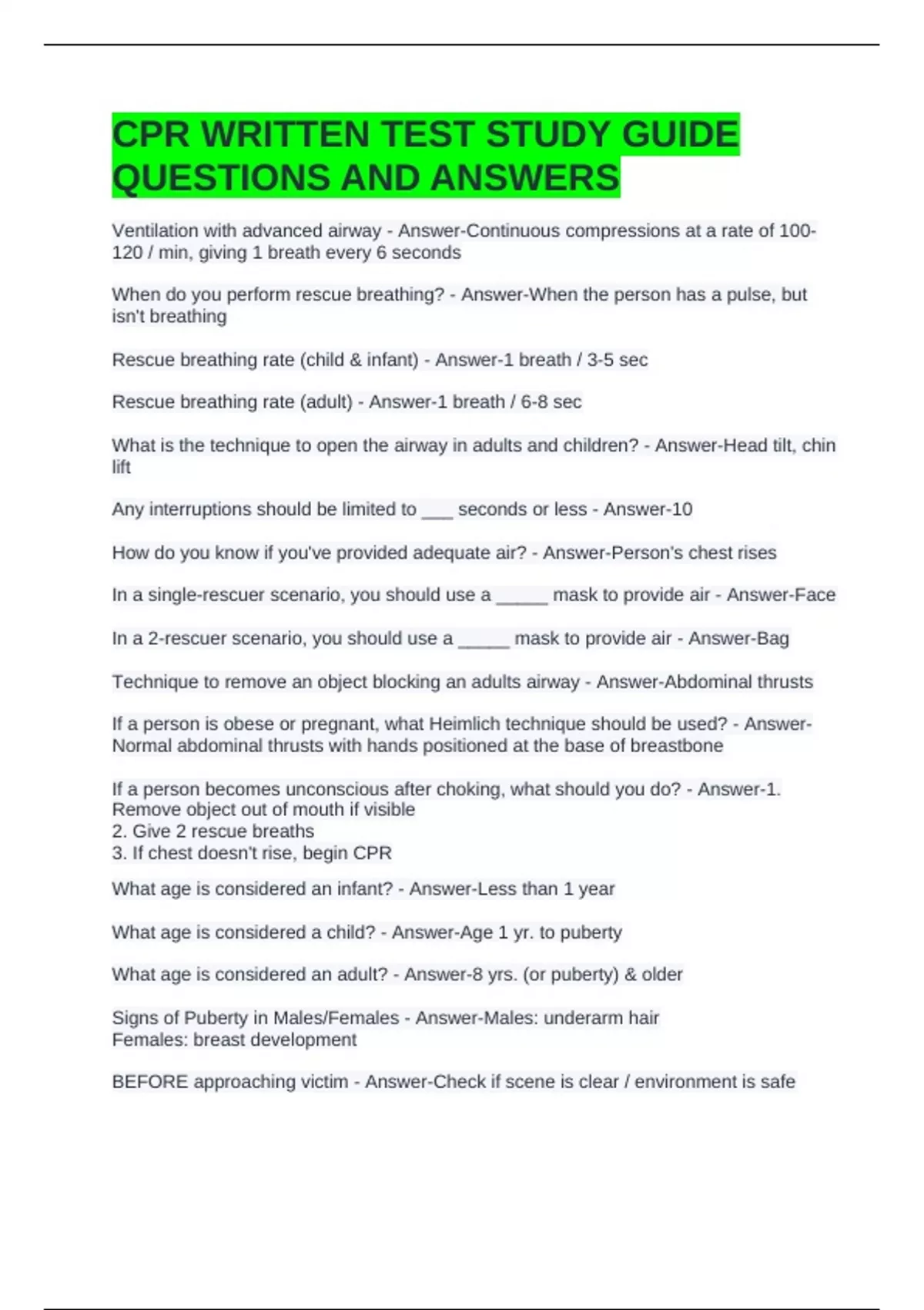 When do you perform rescue breathing? - Answer-When the person has a pulse, but