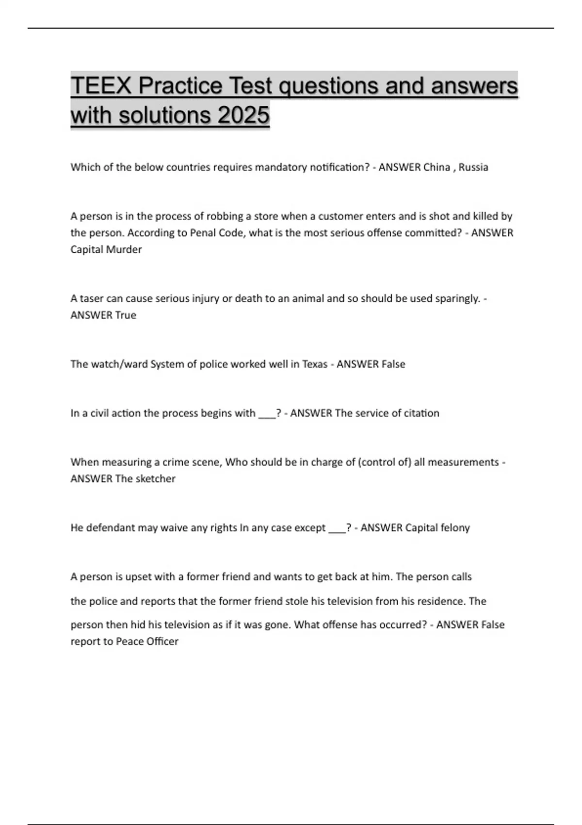 TEEX Practice Test questions and answers with solutions 2025