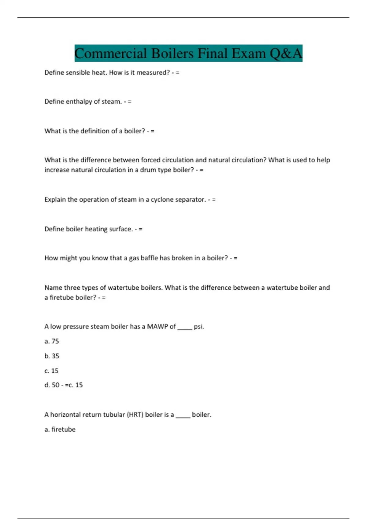 Commercial Boilers Final Exam Q&A