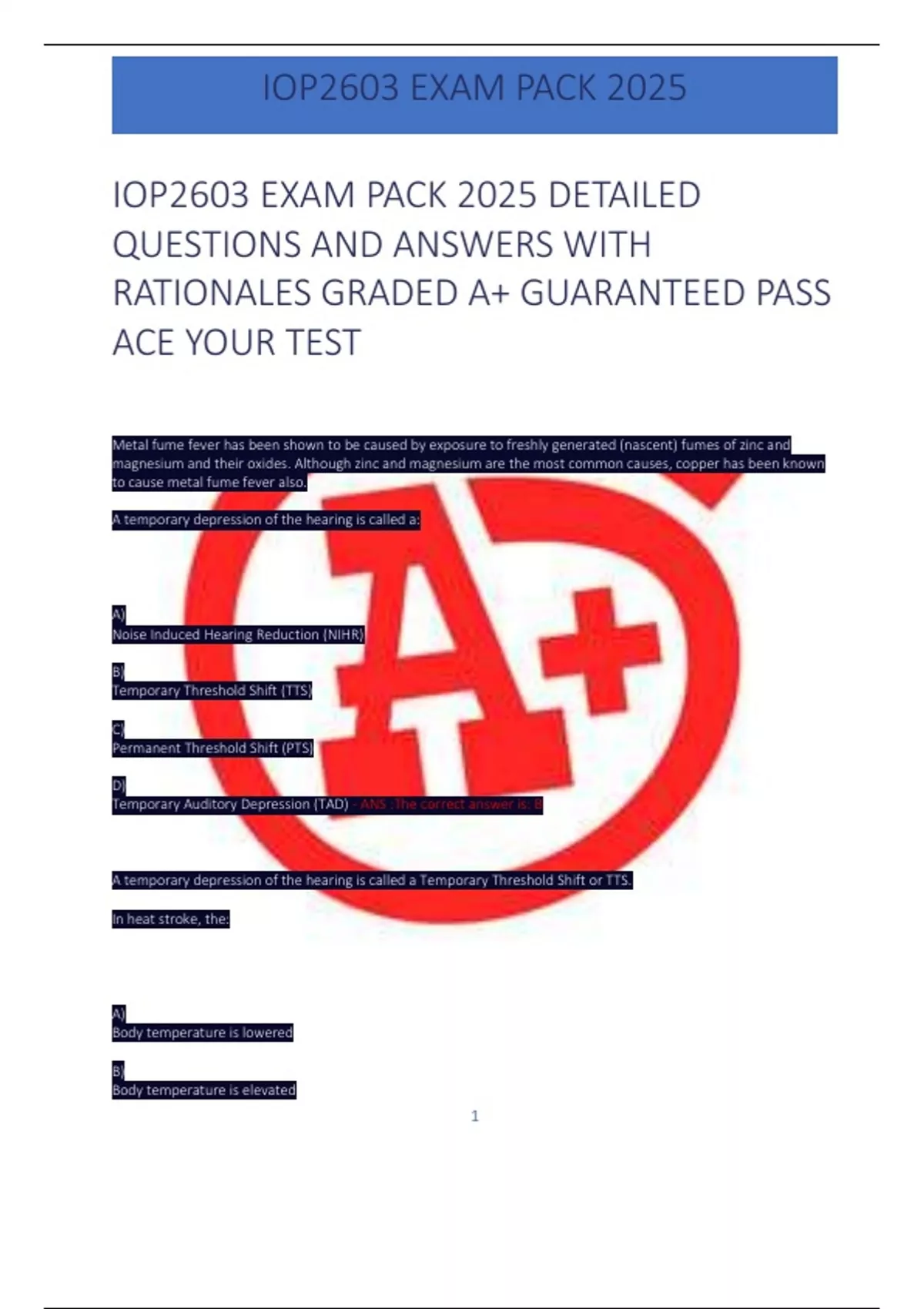 Temporary Auditory Depression (TAD) - ANS :The correct answer is: B