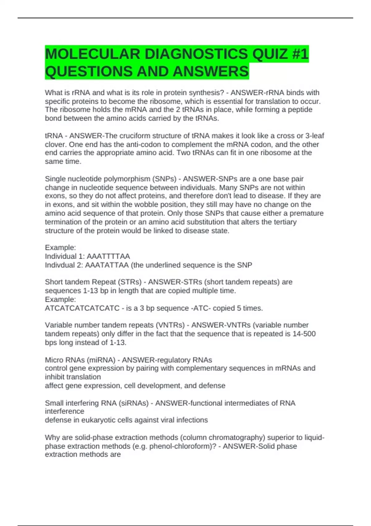 MOLECULAR DIAGNOSTICS QUIZ #1