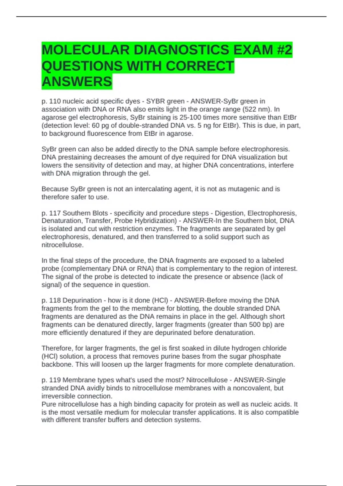 MOLECULAR DIAGNOSTICS EXAM #2