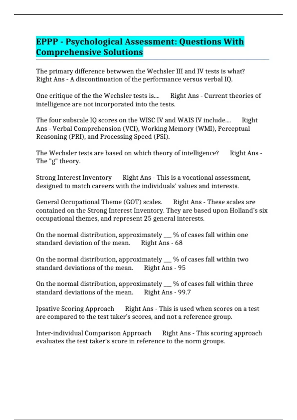 Strong Interest Inventory Right Ans - This is a vocational assessment,