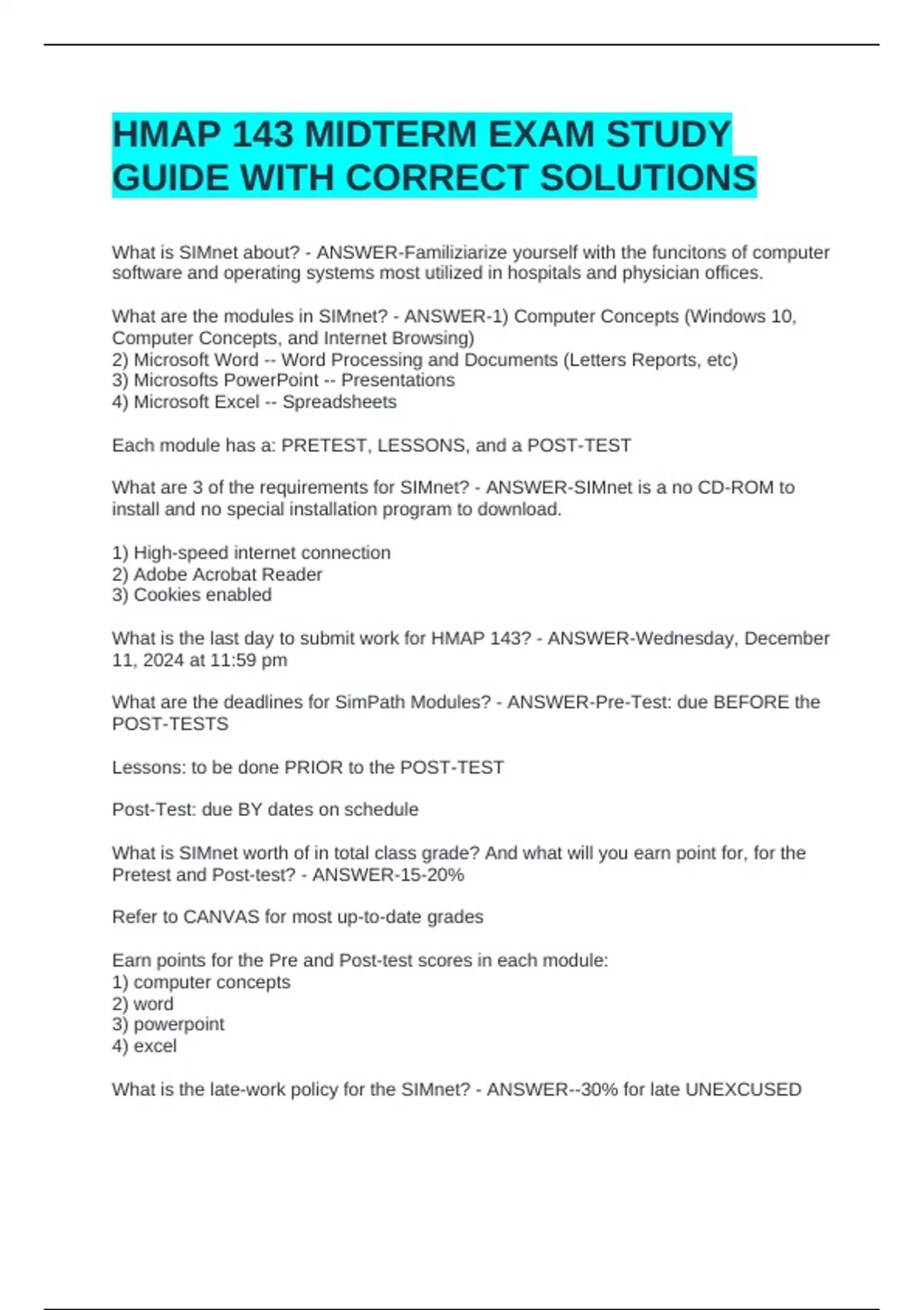 What is the late-work policy for the SIMnet? - ANSWER--30% for late UNEXCUSED