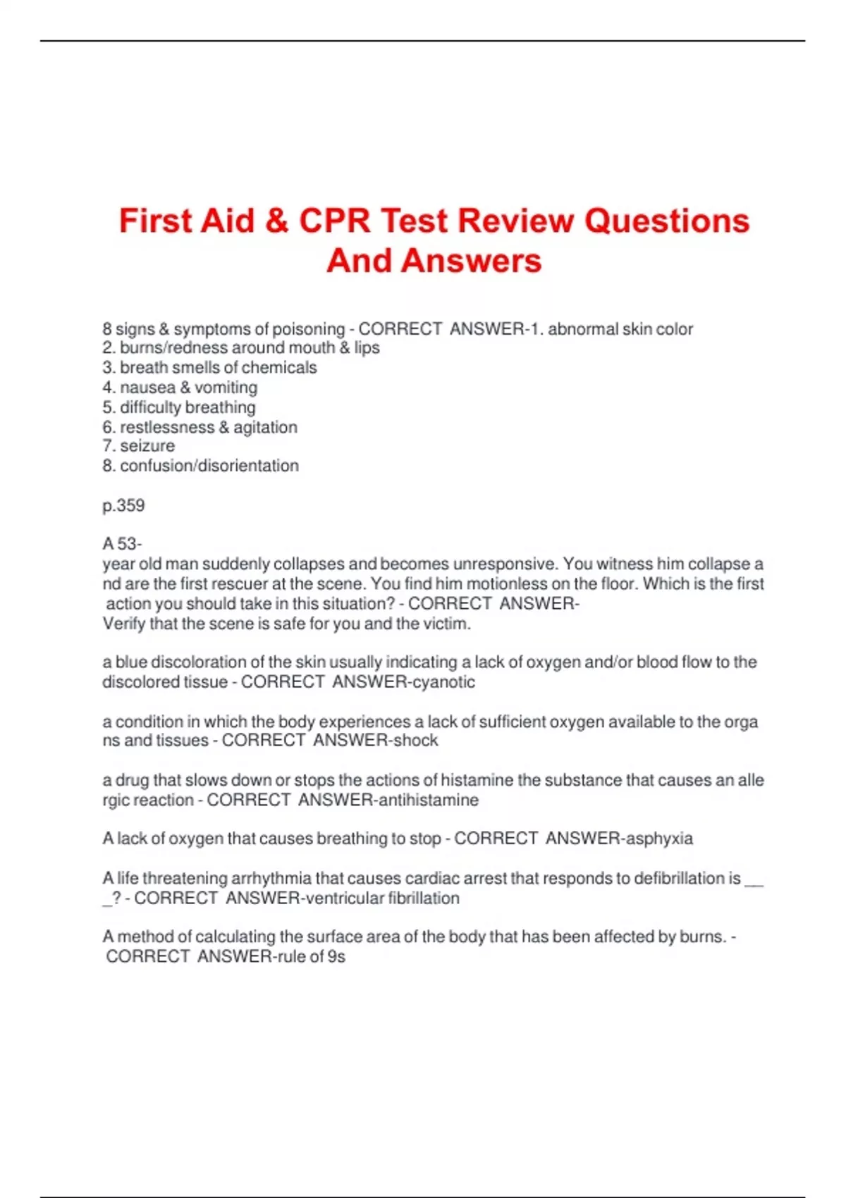 First Aid & CPR Test Review Questions And Answers First Aid & CPR Test Review Questions And Answers First Aid & CPR Test Review Questions And Answers