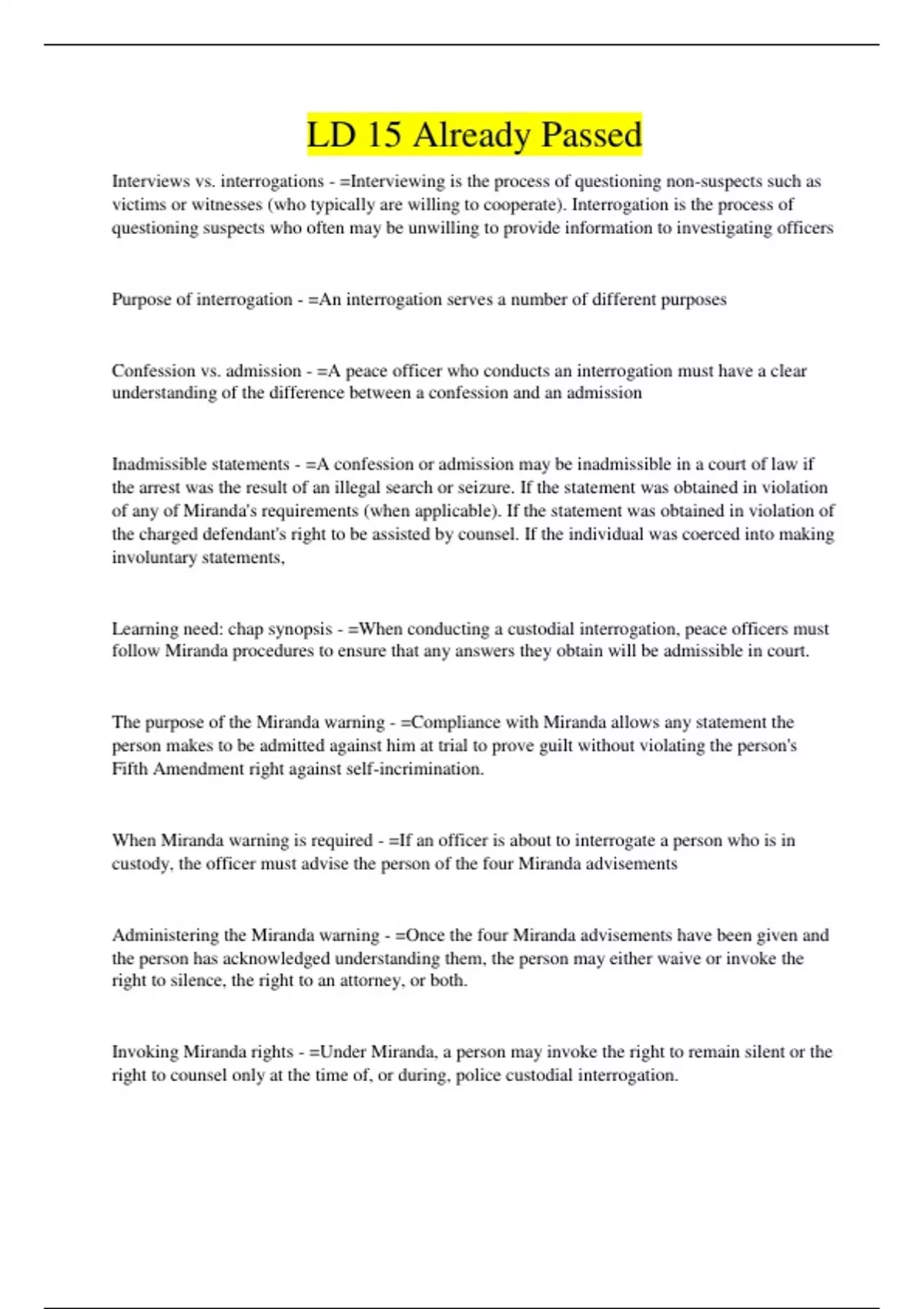Learning need: chap synopsis - =When conducting a custodial interrogation, peace officers must